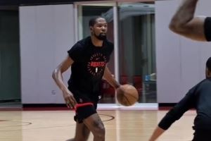 中投机器!火箭官推晒杜兰特投篮训练片段:轻松取分