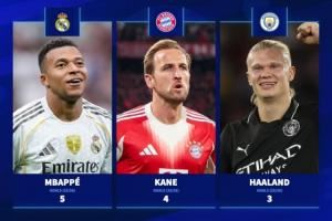 谁将夺得金靴?欧冠射手榜:姆巴佩2轮5球领跑,凯恩4球哈兰德3球