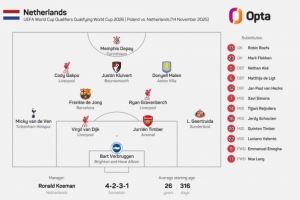 - 2025-11-15波兰VS荷兰首发:莱万PK范戴克,泽林斯基、加克波、德容出战