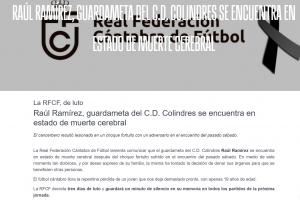对科林德雷斯俱乐部19岁门将劳尔-拉米雷斯的逝世深表哀悼。
